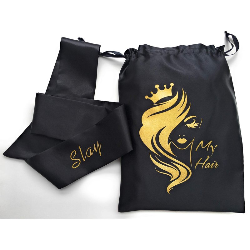 Head Wrap for Black Women, Edge Control Scarf, Silk Hair Wrap for Sleeping, Silk Satin Scarf& Satin Wigs Bundles Hair Tools Storage and Travel Bags, 2Bags & 1 Edge Wrap(2 Bags & 1 Edge Scarf)