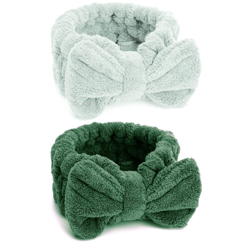 - 2 Netural Colors Headbands: Light green headbands for washing face and dark green spa headbands.