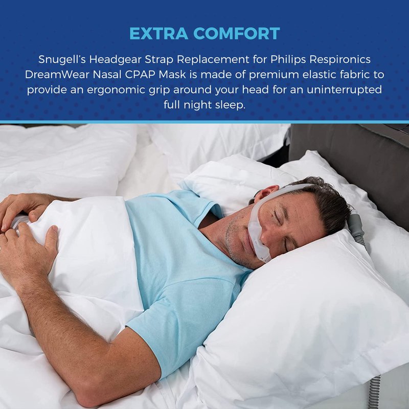- EXTRA COMFORT: Snugell’s Headgear Strap Replacement for Philips Respironics DreamWear Nasal CPAP Mask is made of premium elastic fabric to provide an ergonomic grip around your head for an uninterrupted full night sleep.