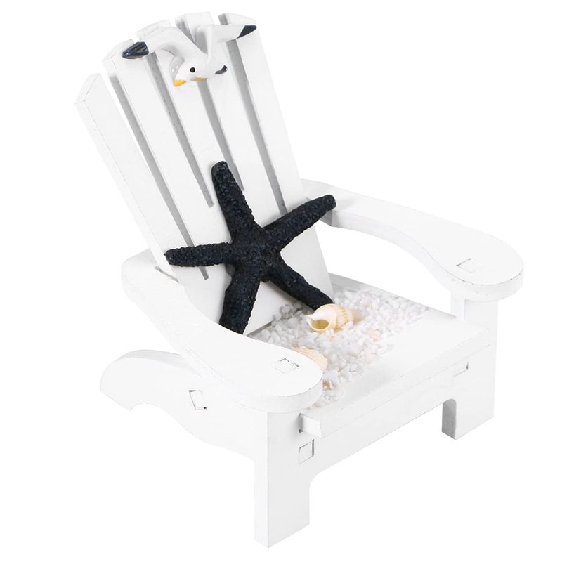 HEALLILY Mini Wooden Beach Chair Dollhouse Miniature Furniture Beach Nautical Decor Chair Ornament Dollhouse Accessories (White)