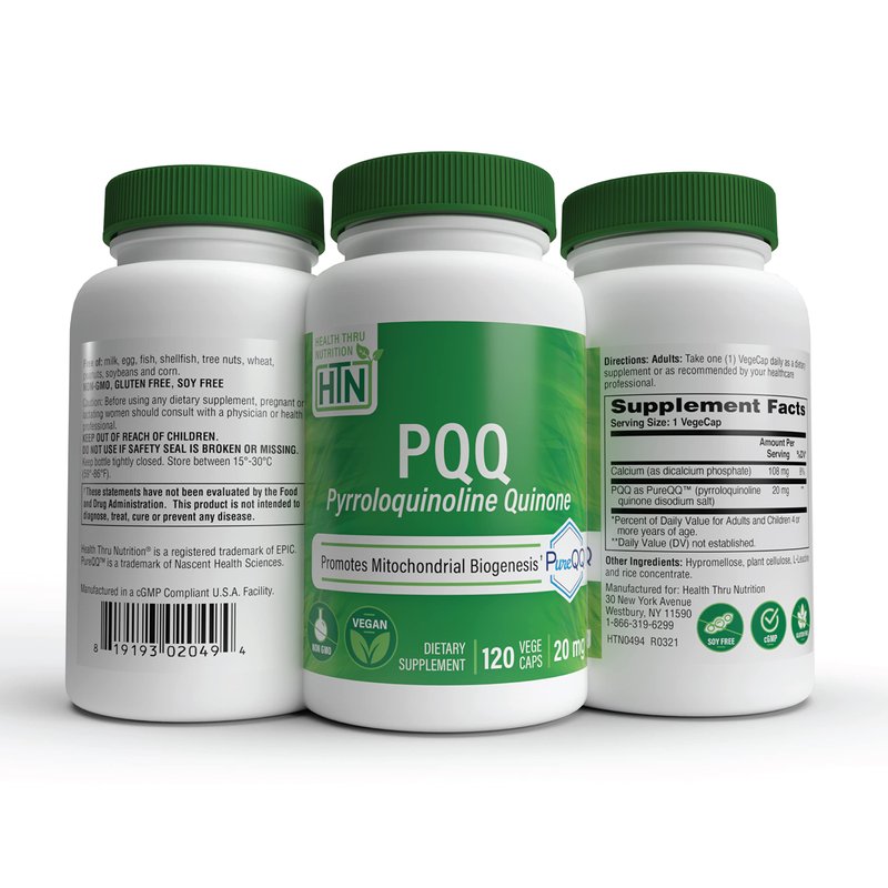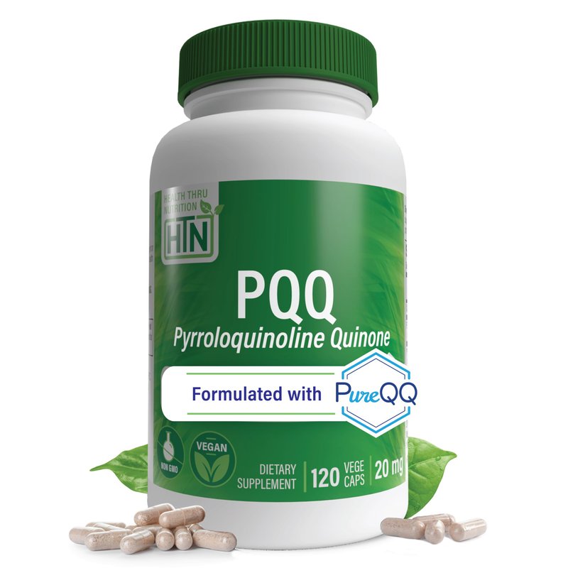 Health Thru Nutrition PQQ 20mg 120 Servings Pyrroloquinoline Quinone as PureQQ | Promotes Mitochondrial Biogenesis | Certified Vegan | Non-GMO Gluten Soy Free Capsules| Clean Label PQQ Supplement