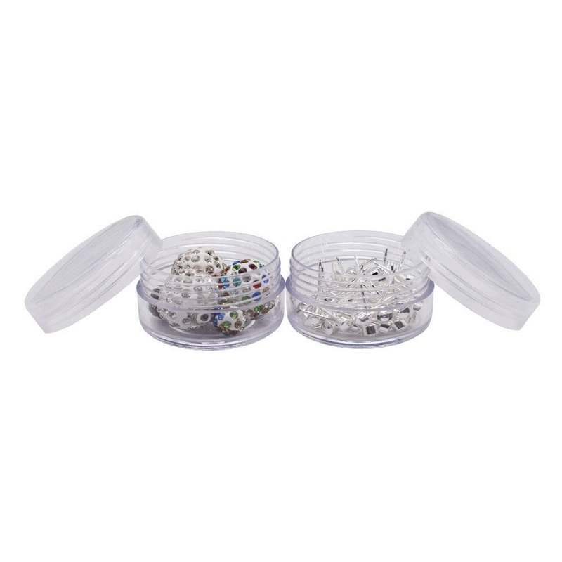 - ✔High Quality: made from fine quality acrylic that resists cracking, breaking.Polypropylene material with Clear Round Top Lid;diameter: 38.8mm*22.3mm/1.53inch X height: 0.88inch.Receive 50 Pieces Clear Bottom Containers and 50 Pieces Top Round Teal Lids;The Top and The Bottom of Each Container Screw Together;Capacity Size Fit About 25 Pcs Beans for You Craft.