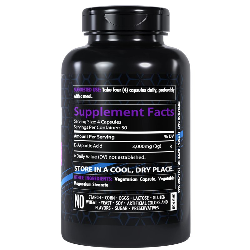 - FORMULA: Ultra concentrated formula made with 3,000mg of D-Aspartic Acid, also known as (DAA):