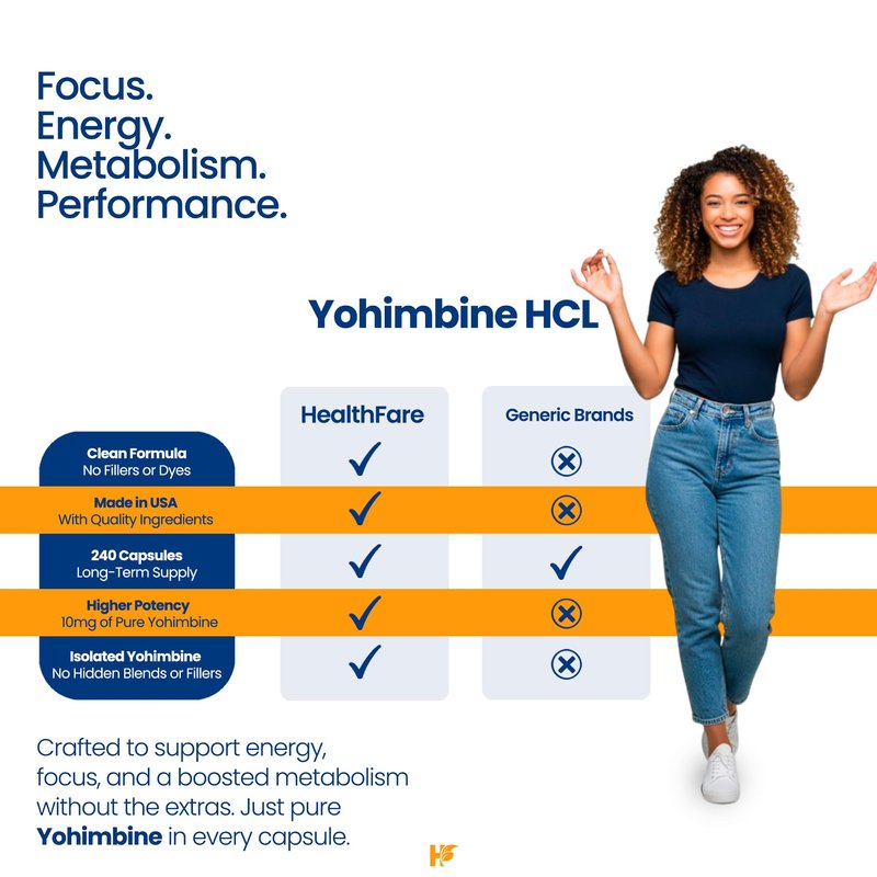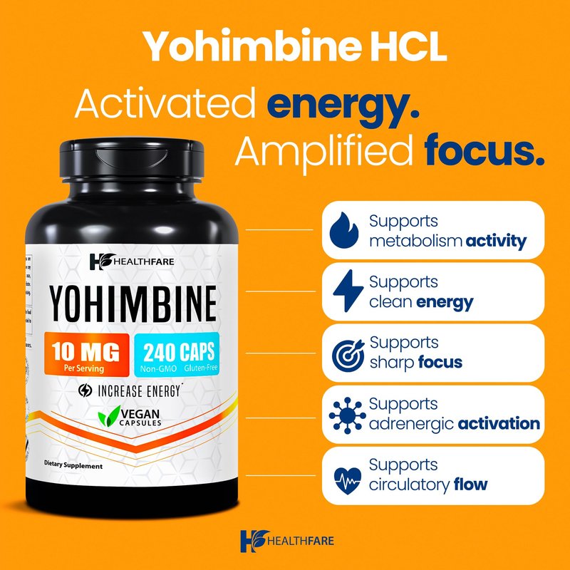 Healthfare Yohimbine HCL 10mg | 240 Vegan Capsules | Maximum Strength Formula | Non-GMO & Gluten-Free | Made in USA