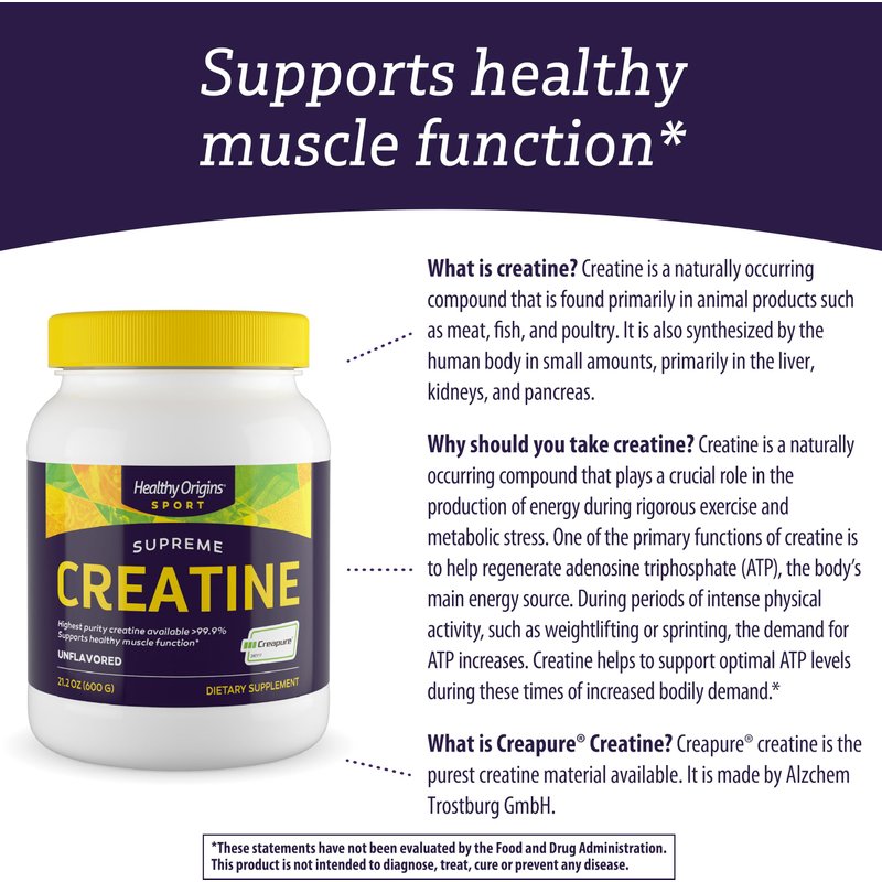 Healthy Origins Supreme Creatine (Creapure), Creatine Supplement for Muscle Support, Unflavored, Non-GMO, Vegan, 21.2 Oz
