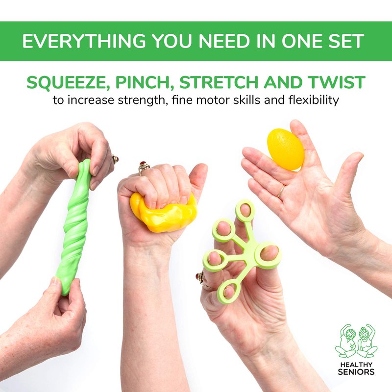 Healthy Seniors Physical Therapy Putty Kit, Finger Exercisers, and Hand Strengtheners. Improves Grip Strength, Dexterity, and Mobility. Supports Injury and Recovery Stress Relief