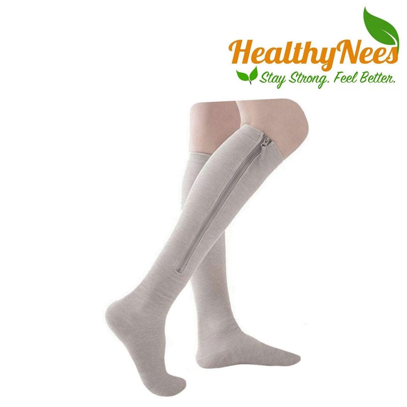 HealthyNees 2 Pairs Set Combo Closed Toe 15-20 mmHg Zipper Compression Socks Leg Fatigue Calf Circulations Support Grey (3XL)