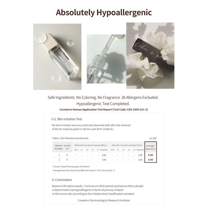 Heart Percent Commas on Life Essential Lip Essence #101 Lulluaby, Watery Oil Clear Lipgloss Essence Intense Overnight Sleeping Lip Treatment 6g (0.2 fl. oz.)