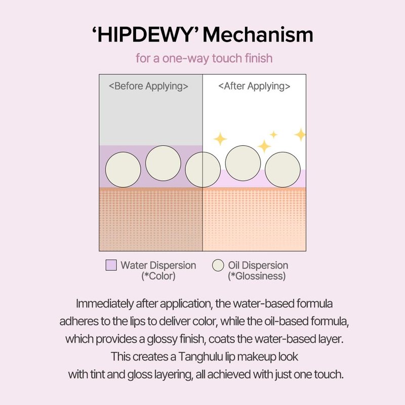 - [One Way, One Touch Finish] Tint coloring and glow layering effects with just one touch. Tint coloring with gloss layering on top, achieving a Tanghulu lip makeup look with just one touch.