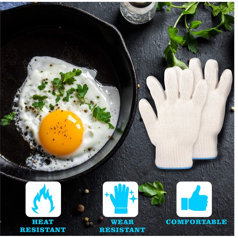 - Quality Cotton Materials - Our heat resistant gloves' inner layer is made of soft cotton, the outer layer of the same materials used in a firefighter's glove, and withstands extreme heat up to 540 degrees Fahrenheit. This heat resistant gloves for grilling offer versatility, comfort, breathability, and durability. These work gloves can be washed, dried, and reused as a daily must