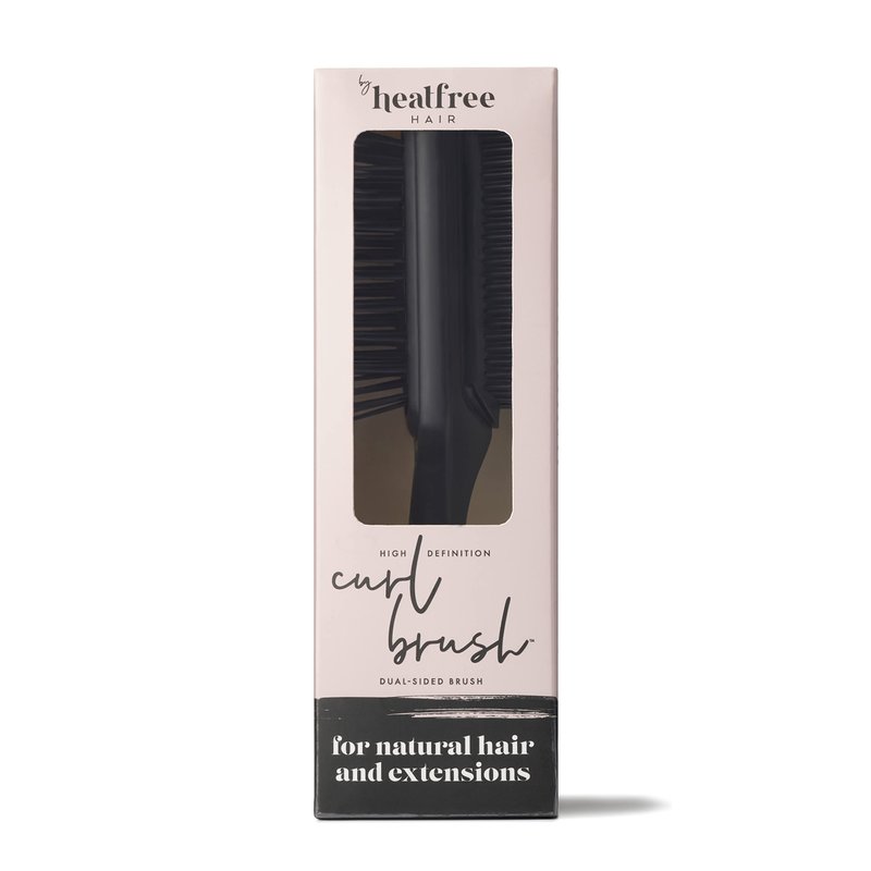 Attention all natural hair and extension wearers everywhere: look no further because the HeatFreeHair High Definition Curlbrush is your perfect styling match. This dual-sided styling tool is specially designed to transform the look of curls, while enhancing the beauty of all hair types. Whether you choose to wear your natural hair or with extensions, the multitasking High Definition Curlbrush transforms all textures for the better. Our revolutionary two-sided brush design effortlessly loosens stubborn knots and tangles, bringing out the true beauty and definition of your texture. When you need a dependable styling tool that won’t break on you, we’ve got your perfect match. Bring your length, fullness, and strength the High Definition Curlbrush promises to not crack or bend under pressure. How to style your hair with the Curlbrush. Step 1: Section - Separate your hair into sections and apply the desired curling or conditioning product. Our favorite for natural hair and extensions is New Condition 3-in-1 Intense Hydrating Conditioner by Perfect Extensions Kit. Step 2: Detangle - Holding the HD Curlbrush vertically or horizontally, use the Detangle side to work through knots, tangles, and matted hair from tip to root. Repeat for each section until your texture is fully resurrected. Step 3: Define - Flip to the Define side and brush through detangled sections from root to tip, conquering any remaining knots still in place. Watch as curls, waves, and kinks instantly spring into their most beautiful, defined shape. Step 4: Style - Now that your natural hair strands or extensions are detangled, defined, and smoothed to perfection, apply your favorite styling product to achieve your desired look. Allow hair to dry, bounce, and be beautiful. One multitasking brush to transform any texture, in a fraction of the time.