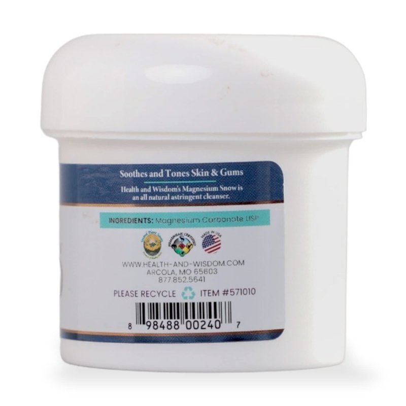 - INGREDIENTS - Health and Wisdom Magnesium Snow is made of high USP grade and pure magnesium carbonate making it a top quality and safe-to-use product