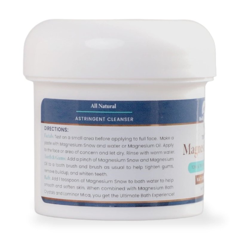 - BENEFITS - Magnesium Snow is an airy light & pure natural mineral with mild astringent, detoxifying properties, making it a great detoxifier & cleanser that removes toxins from deep within the body