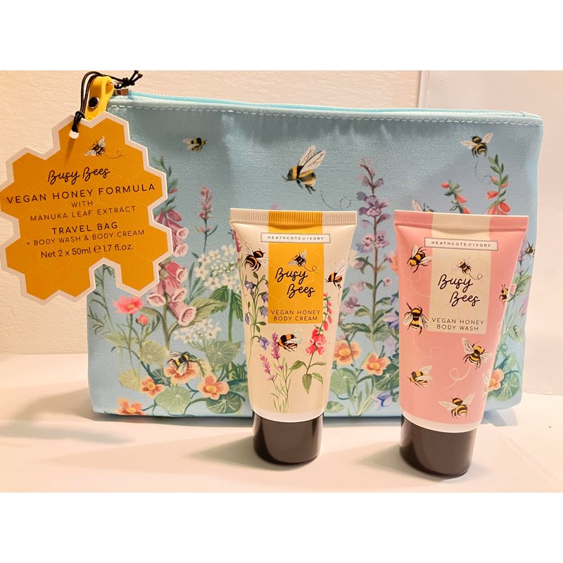 Heathcote & Ivory Busy Bees Vegan Honey Travel Bag Body Wash & Cream Set