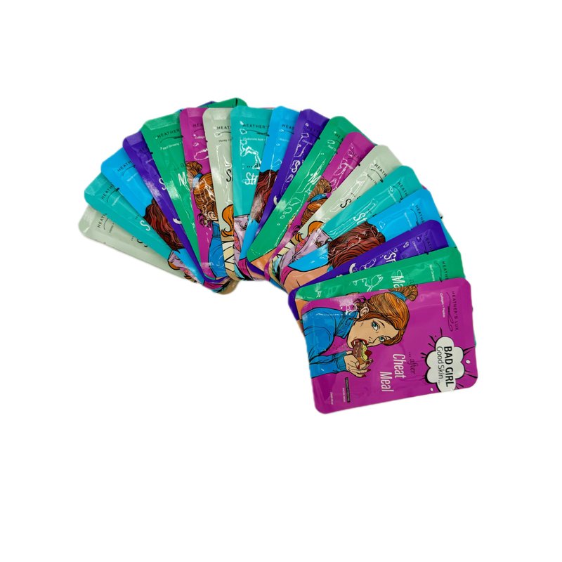Heather's Lux 18 Pack Facial Sheet Mask offers a luxurious Korean-style skincare experience. This set of 18 face sheet masks is designed to hydrate, moisturize, nourish, and provide anti-aging benefits for your skin. Crafted with high-quality ingredients, these "Bad Girl" masks deliver a pampering facial treatment in the comfort of your home. Indulge in a revitalizing self-care ritual and reveal a radiant, youthful complexion. Suitable for all skin types, these sheet masks make an excellent addition to your beauty routine. Embrace the power of Korean skincare and treat yourself to a spa-like experience with Heather's Lux 18 Pack Facial Sheet Mask.