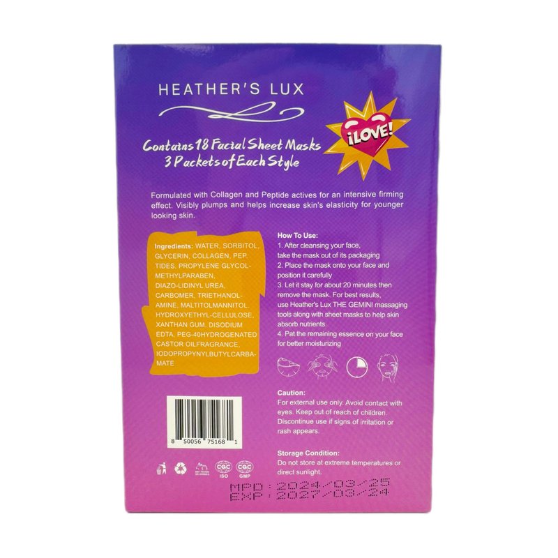 - Luxurious Pampering: Indulge in the ultimate self-care experience with Heather's Lux 18 Pack Facial Sheet Mask set.