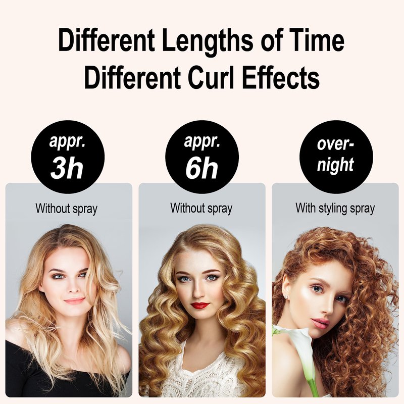 - 【Easy to use】Our heatless curling iron is very easy to use, design and create your own hairstyle anytime, anywhere. You can fix it on your hair at night before you go to bed and you will have beautiful curls the next morning. And the curling iron headband won't cause any discomfort while you sleep, you can wear it all night long.