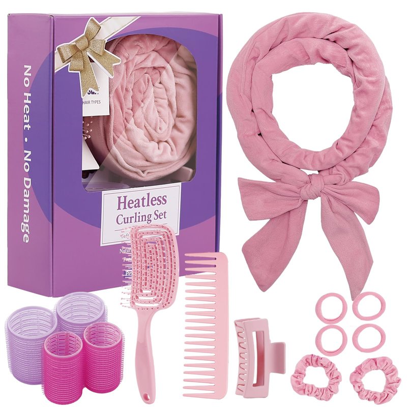 - Heatless Curling Set:70-inch velvet hair curler, 2 velour hair ties, 4 elastic hair ties, hair clips, wide-tooth comb, detangling brush, 4 hair rollers, and it's well-packed with an exquisite gift box. Perfect rollers hair curlers gift set for all women and girls.