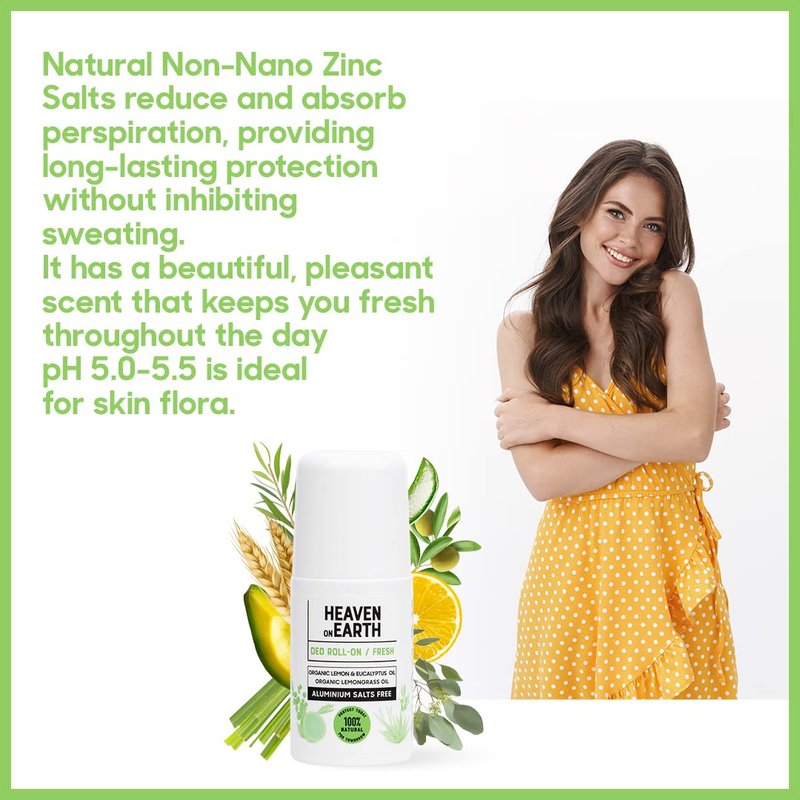 Heaven on Earth - Natural Deodorant for Women and Men, Vegan Roll On Deodorant Women Aluminum Free - Scented with Citron, Lemongrass, Lemon, Niaouli Essential Oils - Plant Based Deodorant 50ml