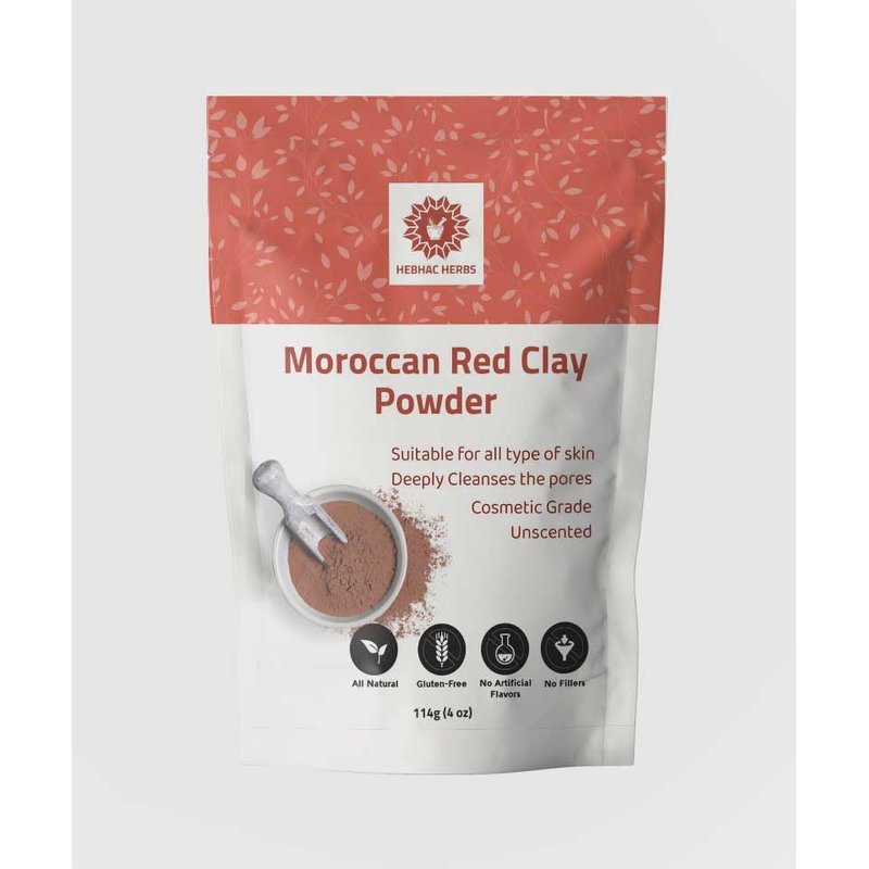Hebhac Herbs Moroccan Red Clay Powder - Moroccan Lava Clay for Face Mask, Body Wrap, Hair Mask, Soap Making, Spa Treatment - Facial & Body Clay for Men & Women (114f (4 oz))