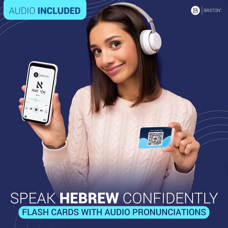 Through Hebrew flashcards, start learning Hebrew from the beginning. This pack includes the complete alphabet of Hebrew, including their English replacement, alphabetical order, and pronunciation guidance. Developed after extensive research and consultation with top-tier native speakers. Briston alphabet flashcards are a great step toward your excellence in Hebrew, covering all the aspects that are beneficial at a basic level.
