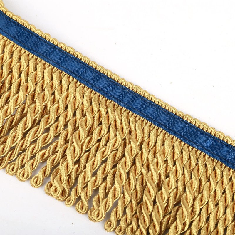 HedongHexi Bullion Fringe Trim and Embellishments 5/10 Yard X 2.5 Inches Fabric Trims Sewing DIY Decoration for Clothes Gold Hebrew Fringes with Blue Ribbon