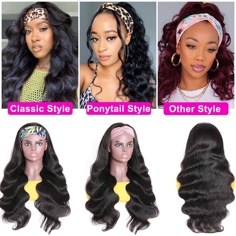 - 1.New Fashion Design:Glueless Body Wave Headband Wig Human Hair,Show Your Own Natural Hairline,Looks More Realistic.Can Make Variety Hairstyles as Your Like.