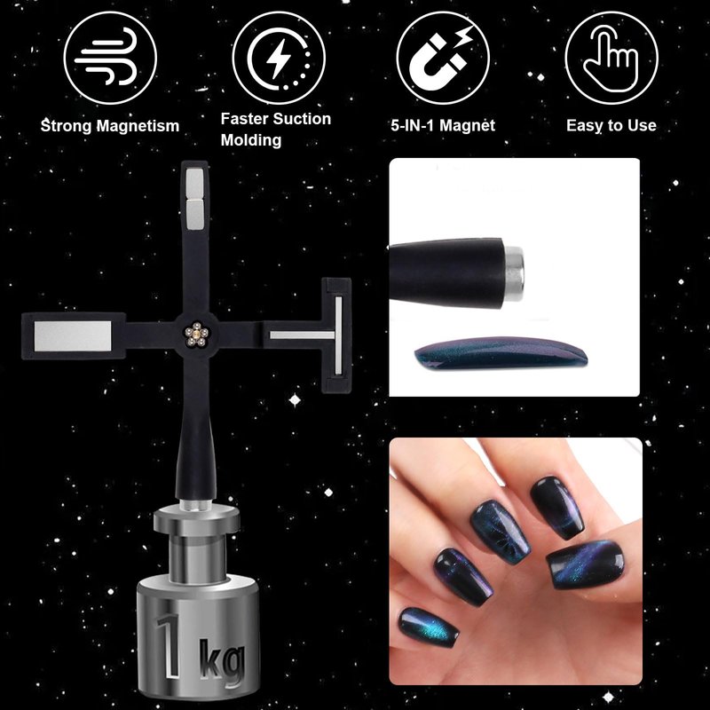 - 【5 in 1 Multifunctional Cat Eye Magnet】This upgraded magnet for cat eye gel nail polish features 5 different magnetic head ends that can create a variety of cat eye patterns, whether French tip, cross, flower, gradient, and so on, they can all be easily achieved through this tool, providing you with endless versatility.