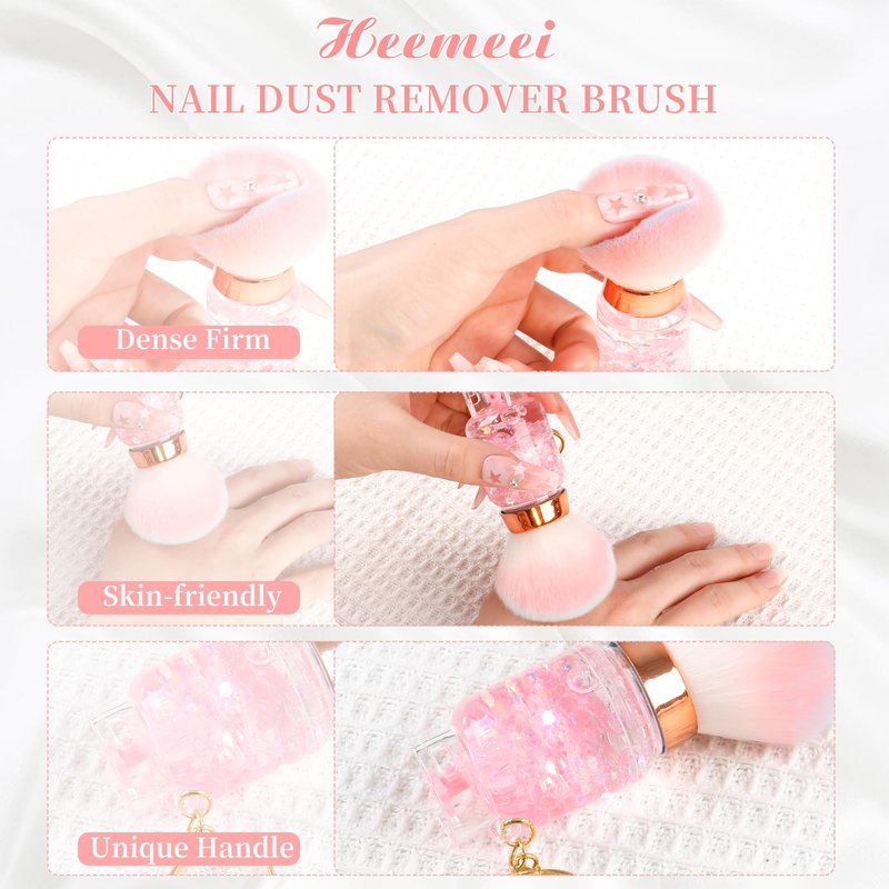 heemeei Nail Dust Brush for Acrylic Nails, Nail Art Dust Powder Remover Brush with Sequins and Liquid Dandle, Soft Kabuki Nail Art Dust Clean Pink White Hair for Makeup Manicure