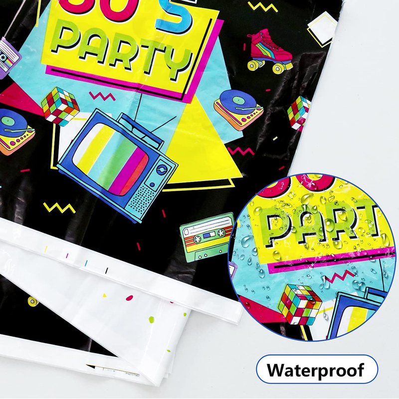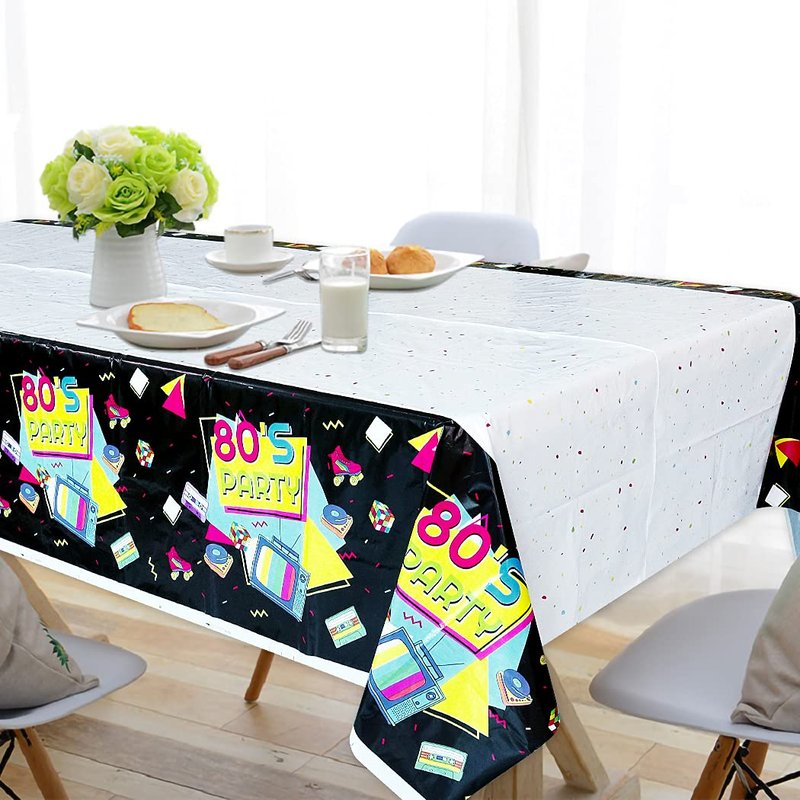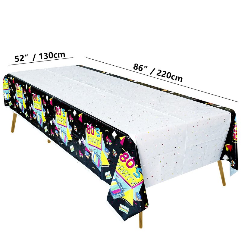 - PERFECT SIZE - Each 80's tablecloth supplies measures approximately 86 x 52 inches; perfectly sized for standard size circular, square, or rectangular tables; They add a fun atmosphere to your family's birthday party or other retro themed parties.