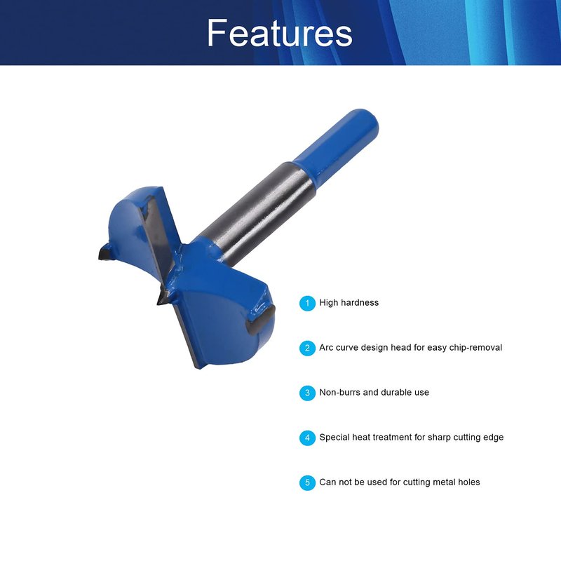 - 【Applications】: Forstner drill bit is for ordinary purpose; Can be used for drilling holes on wood and plastic products, furniture, door hinge; Used on cutting wood, plywood, solid wood boards, MDF, plastics, fiberglass etc.