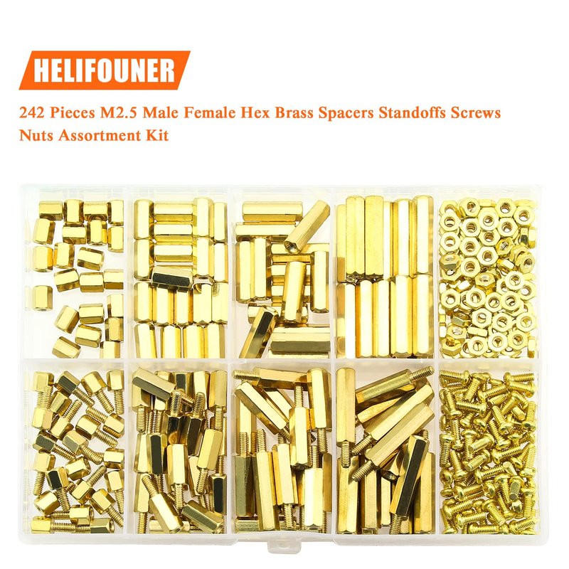 - 【Sizes】M2.5 brass female to female length is 5 mm, 10 mm, 15 mm, 20 mm; The screw size is m2.5x6 mm, the thread pitch is 0.45 mm, total 242 pieces/10 sizes of the most commonly used spacer in a plastic case, different size can satisfy your different needs.