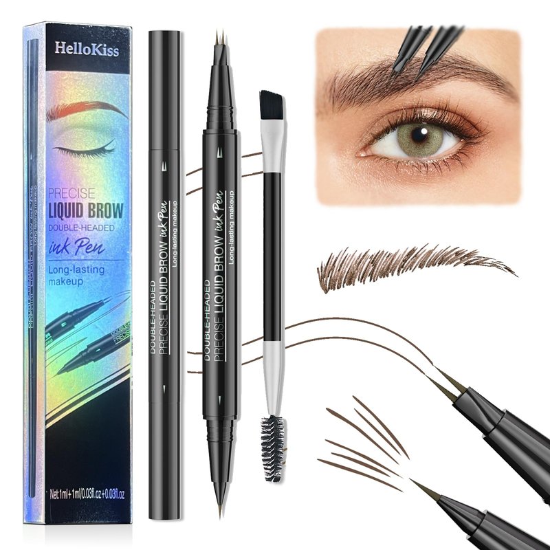 Hello Kiss Microblading Eyebrow Pen, Trailott Eyebrow Pen 2 Fork Tip, Hello Kiss Curved Eyebrow Pen, Trailott Microblading Eyebrow Pencil, Hellokiss Precise Liquid Eyebrow Pen (02#BROWN)