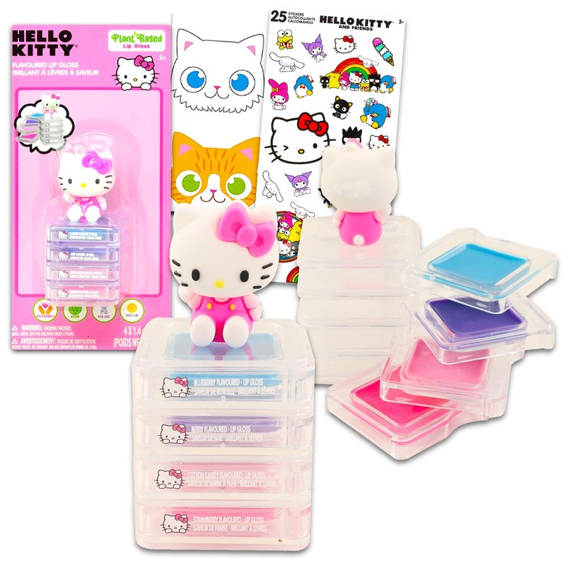 - Officially licensed Hello Kitty lip gloss set for kids and adults alike. As a bonus, this bundle also come with Hello Kitty and cat stickers for double the fun!