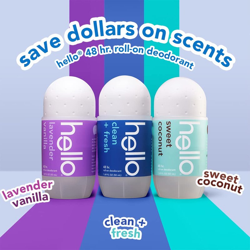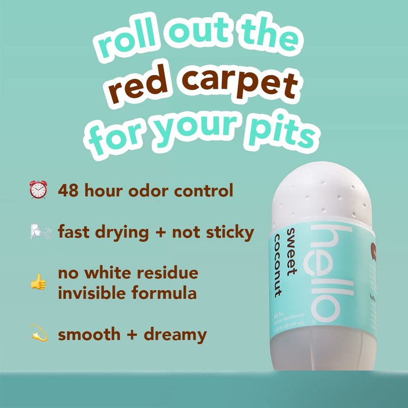 - Includes two (2) 1. 69 oz roll on tubes of hello Sweet Coconut Roll On Deodorant, Aluminum Free Deodorant