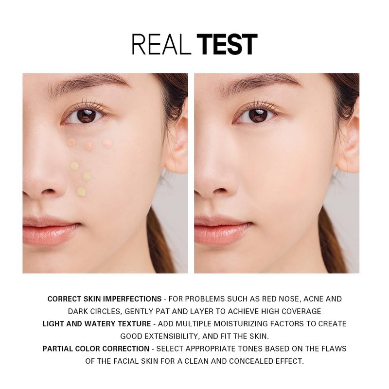 The color correction can target flaws more precisely, paving the way for even skin tone. Thus, the new colors "21 Olive Green" and "22 Honey Peach" were born. 21 Olive Green is a yellow-green tone that can correct redness in areas such as acne. 22 Honey Peach is a pink-orange tone suitable for covering dark circles.It can be used alone or layered with other skin colors, or finally applied with foundation for a clean and flawless makeup look. Correct skin imperfections - for problems such as red nose, acne and dark circles, gently pat and layer to achieve high coverage Light and watery texture - Add multiple moisturizing factors to create good extensibility, and fit the skin. Partial color correction - Select appropriate tones based on the flaws of the facial skin for a clean and concealed effect.