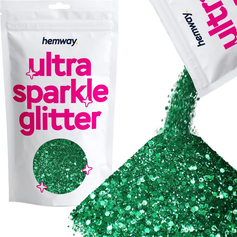 Hemway Ultra Sparkle Glitter - Multi-Size Chunky Fine Cosmetic Glitter Mix for Body Face Hair Eye Nail Art Festival, Crafts for Tumbler Resin Decorations - Emerald Green - 100g / 3.5oz