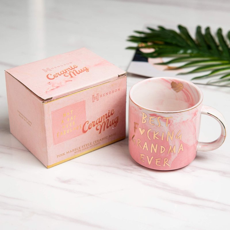 Hendson Grandma Birthday Gifts - Best Grandma Ever - Funny Gift For Nana, New Grandma, Pregnancy Announcement For Grandparents, Grandma To Be, Grandmother - Pink Marble Mug, 11.5oz Coffee Cup