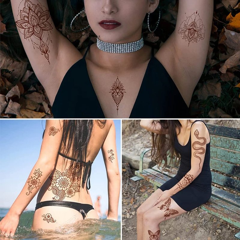 Henna Tattoos 6 Sheets Brown Henna Temporary Tattoo Stickers Waterproof Sexy Fake Tattoos Brown Henna Tattoos Sticker for Women Girls DIY on Body Face Arms Legs Decoration