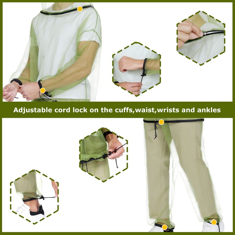 - TRAVEL COMPANION - This mosquito suit is the perfect travel companion. The included carrying pouch ensures easy storage and transport wherever you go. Don't let bugs ruin your trip - pack this mosquito suit set and enjoy your travels with peace of mind.