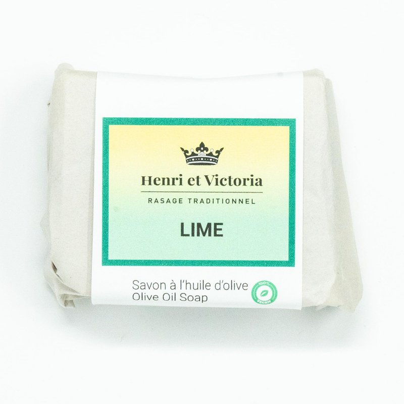 Henri et Victoria’s invigorating lime and olive soap bar features plant-derived ingredients that are gentle on the skin and kind to the planet. This premium bar soap is formulated with a nutrient-rich blend of pure olive oil, coconut oil, soy oil (non-GMO), cocoa butter, and castor oil.