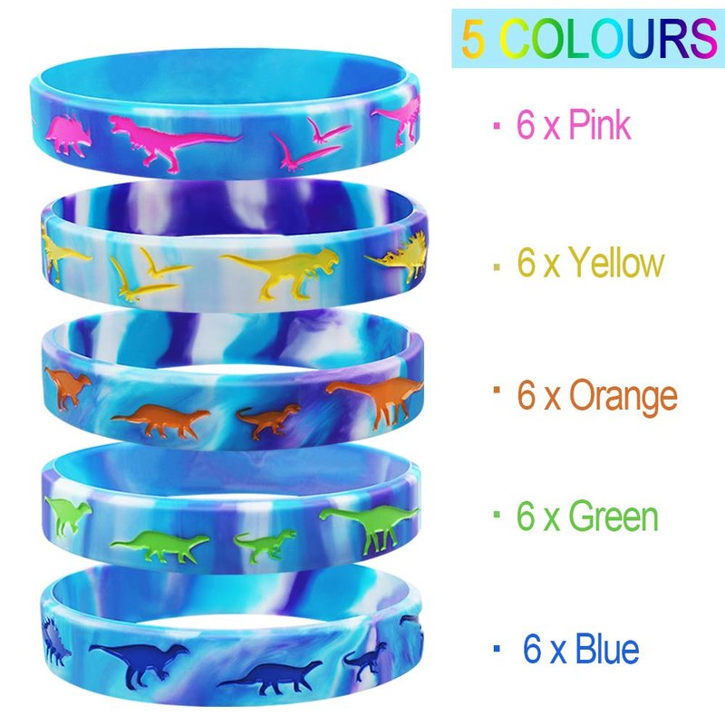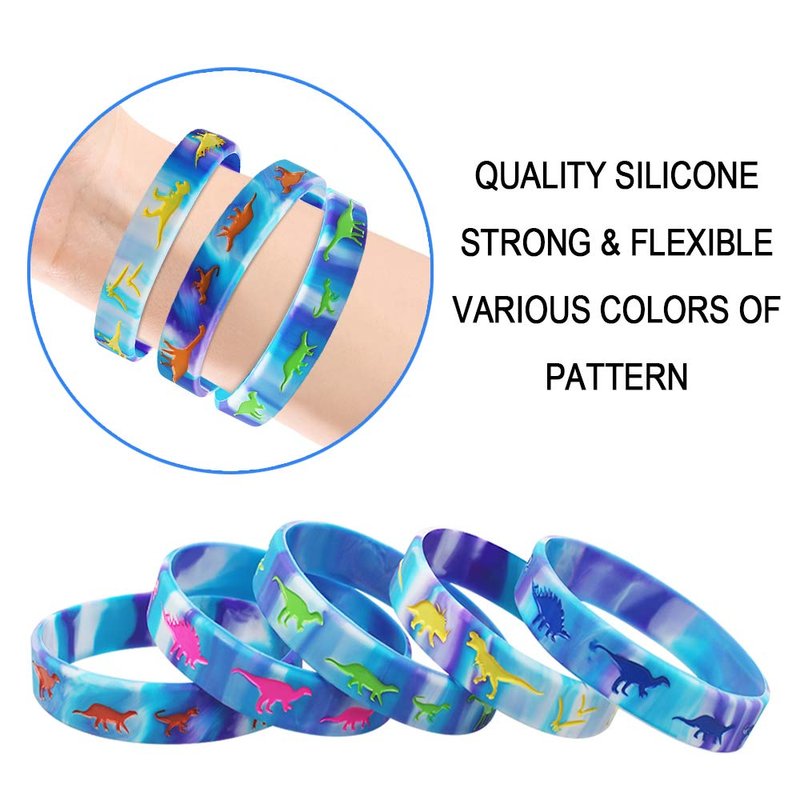 - Dinosaurs Theme Party Supplies - These Silicone Wristbands Bracelets with dinosaur elements is suitable for dinosaur themed party and birthday party. Great party favors for both kids and adults.