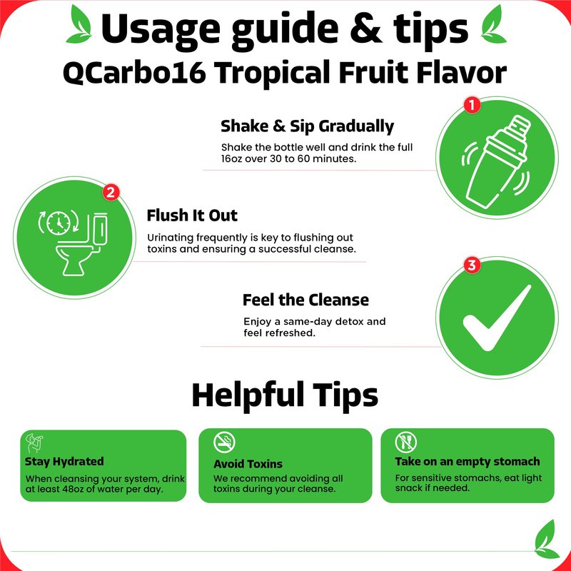 Herbal Clean QCarbo16 Same-Day Premium Detox Drink, Tropical Flavor, 16 Fl Oz