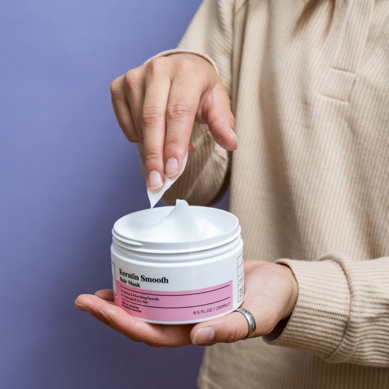 - KERATIN SMOOTH HAIR MASK replenishes strength, protein and lost moisture for smoother, healthier, more manageable hair that’s easier and faster to blow dry