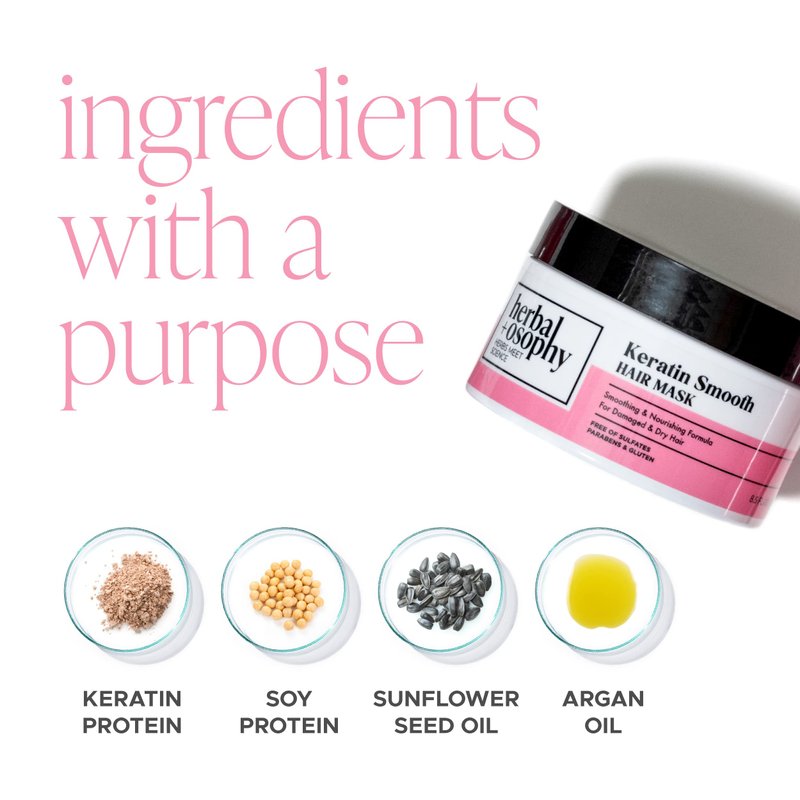 Herbalosophy Keratin Smooth Hair Mask – Smoothing & Nourishing Formula for Damaged & Dry Hair – Salon-Quality Haircare with Natural, Healthy Ingredients. Vegan. Sulfate & Paraben Free. 8.5oz