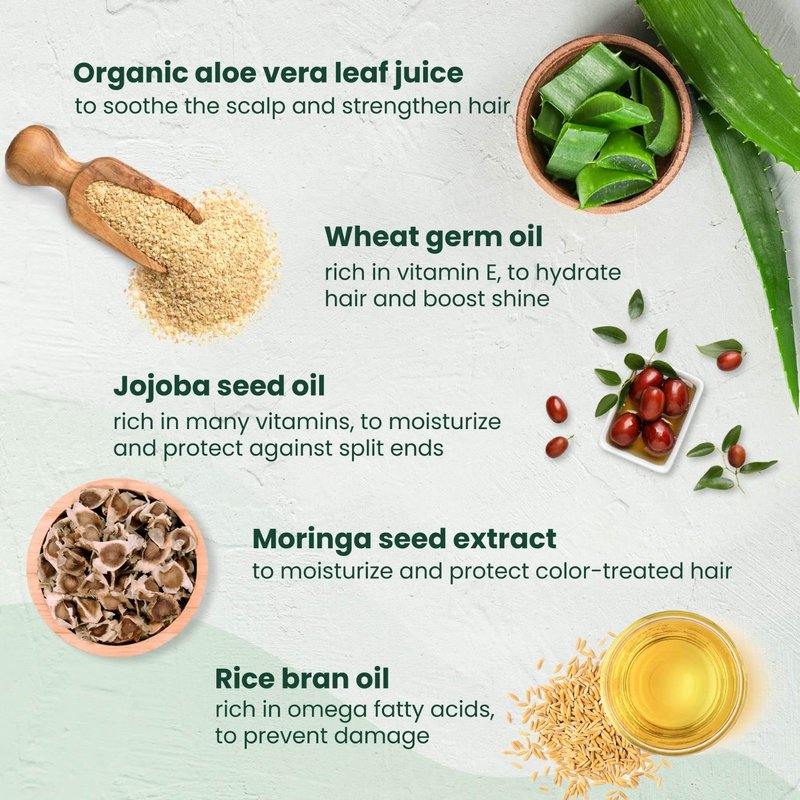 - NATURALLY REVITALIZE HAIR - Proteins and Vitamin F enrich its unique formula, combining the benefits of aloe vera, jojoba oil and wheat germ extracts. The natural ingredients combined to nourish and revitalize dry, damaged or colored hair.