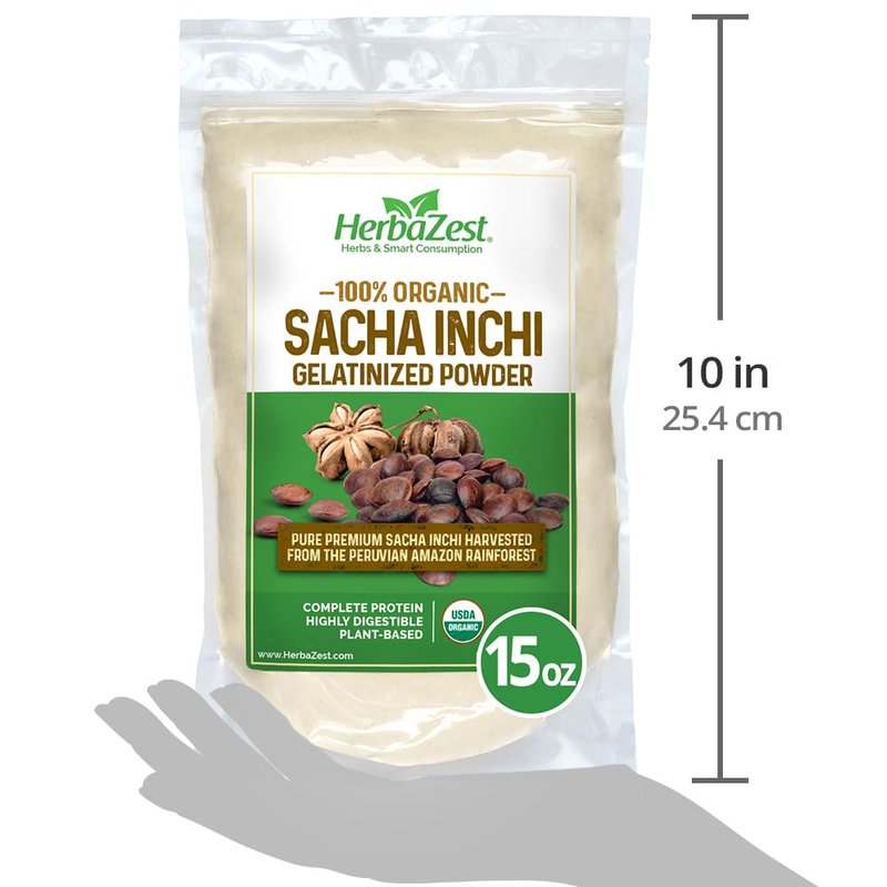 HerbaZest Sacha Inchi Protein Powder Organic - 15oz - USDA Certified, Vegan & Gluten-Free Superfood - Perfect for Smoothies, Baking, Yogurt, Hot Cereal & Savory Dishes