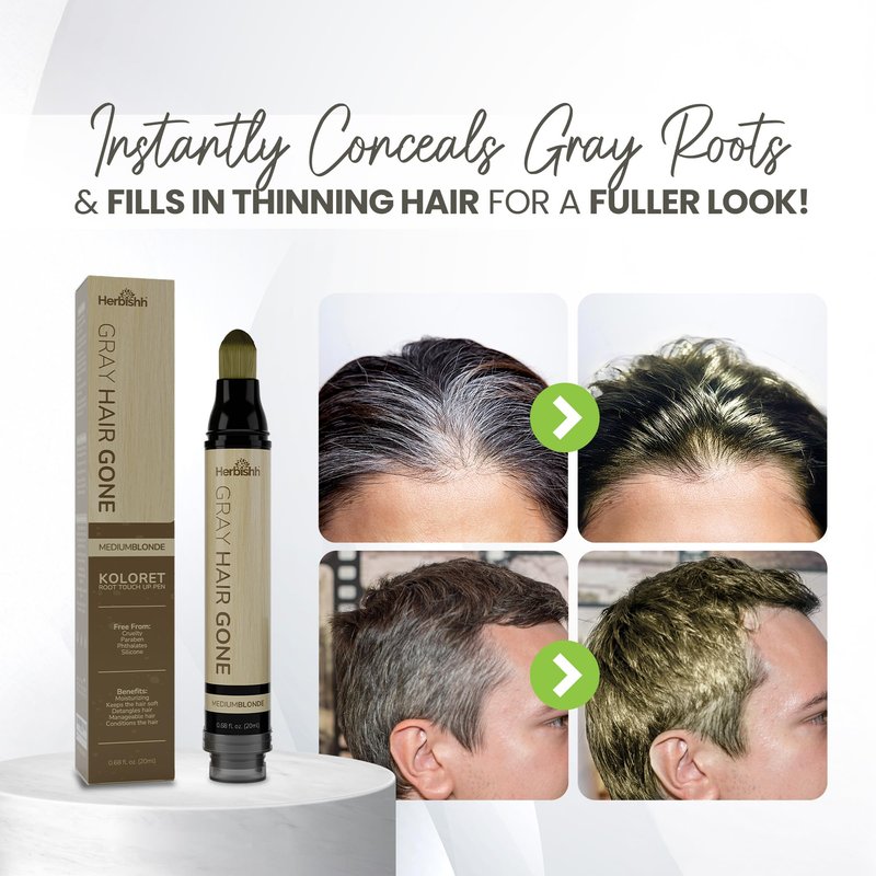 - INSTANTLY FILL IN THINNING HAIR & COVERS VISIBLE SCALP AREAS: Struggling with hair loss or gray roots? Say goodbye to embarrassment! Herbishh Hair Root Cover Up Medium Blonde provides gray coverage, root touch-ups, and fills in thinning hair for a fuller and natural look.