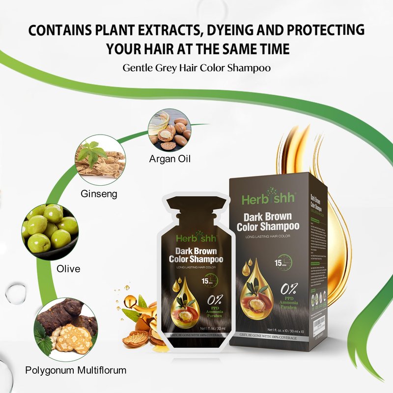 - AVAILABLE IN MULTIPLE COLORS TO MATCH YOUR HAIR– Choose from a variety of colors (Black, Dark Brown, Light Brown, Chestnut Brown, Linen, Golden Brown) that are sure to suit your natural hair color to give you seamless coverage! This hair dye shampoo (dark) comes in a 30ml x 10 pack/Sachet that will surely last you for a long time.