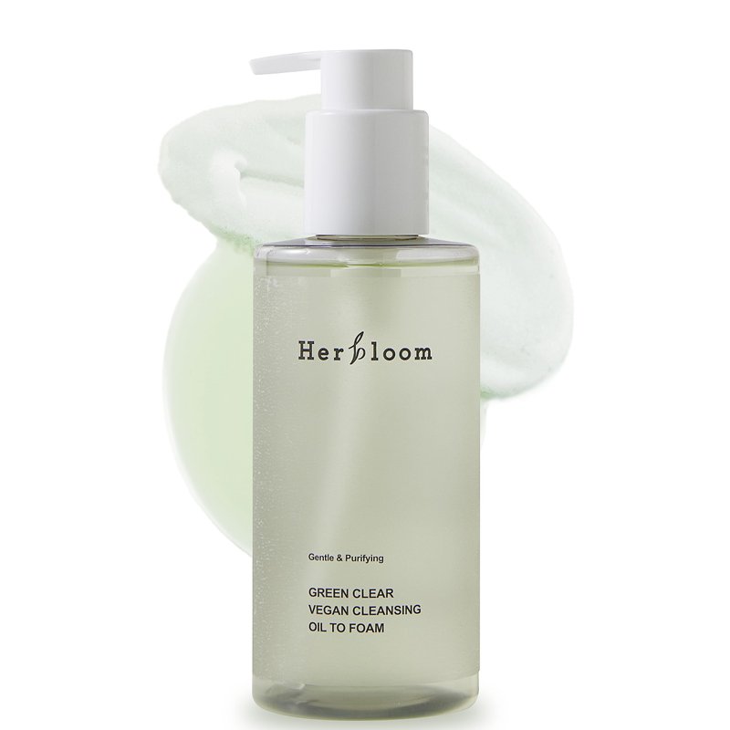 herbloom Green Clear Vegan Cleansing Oil to Foam - Korean Cleanser, pH Balanced Mild Foam Cleanser, Oil Based Cleanser, Sulfate Free, Vegan Skincare - 6.76 fl.oz.